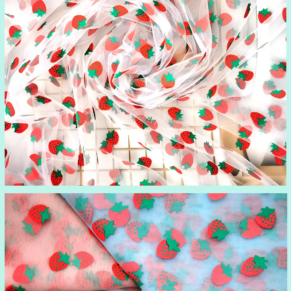 Материал тюля клубники
