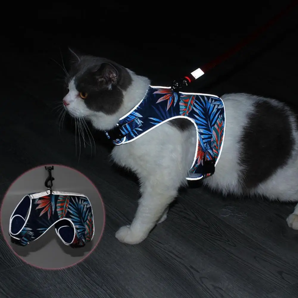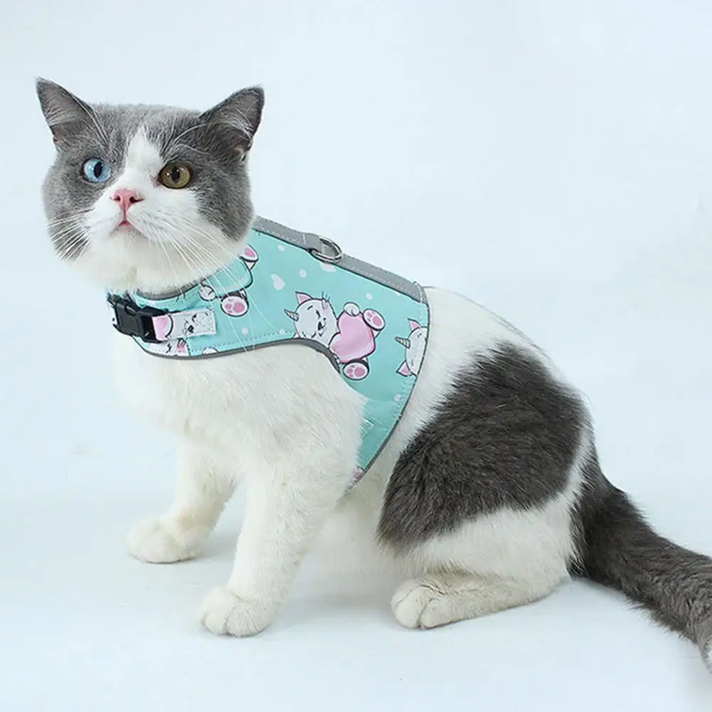 Cat Walking Harness Vest Reflective Chest Strap Kitten Leash Traction Rope Set