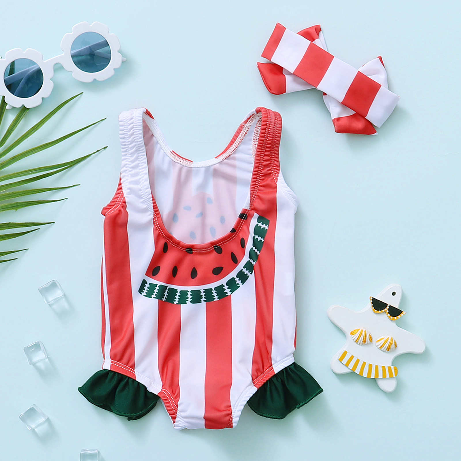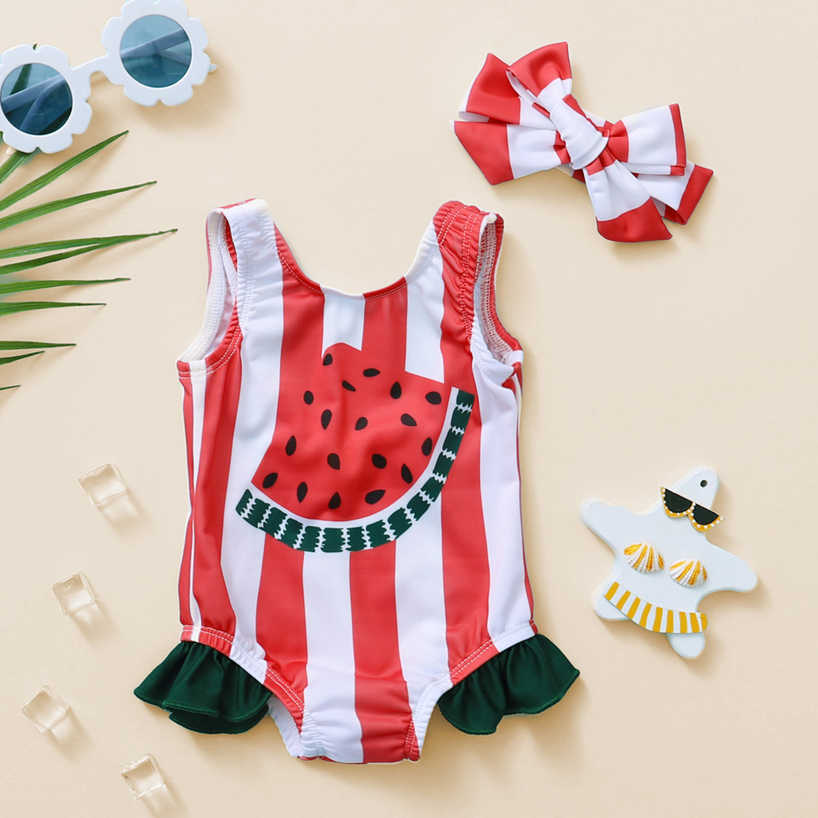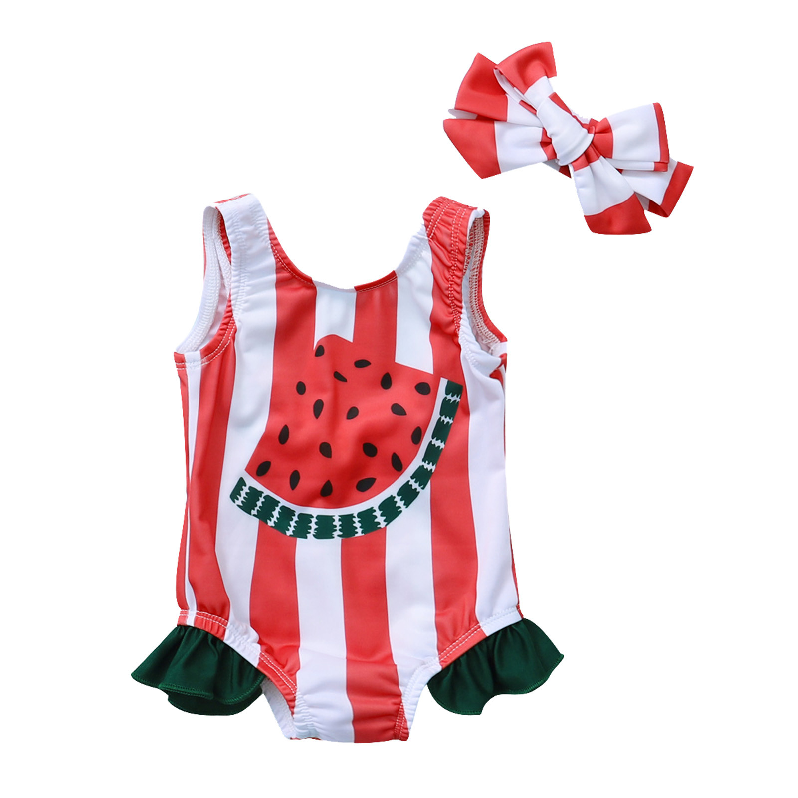 Цельный купальник в полоску с принтом арбуза для маленьких девочек; Купальный костюм