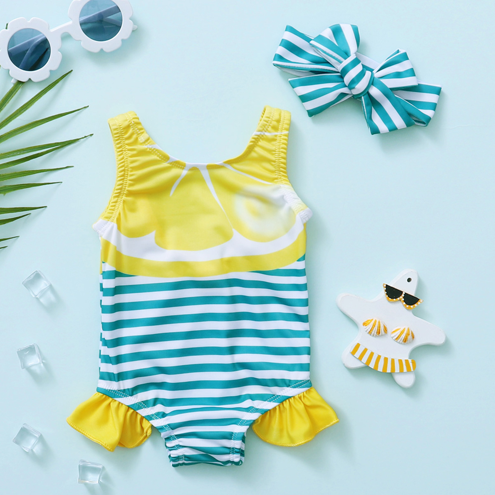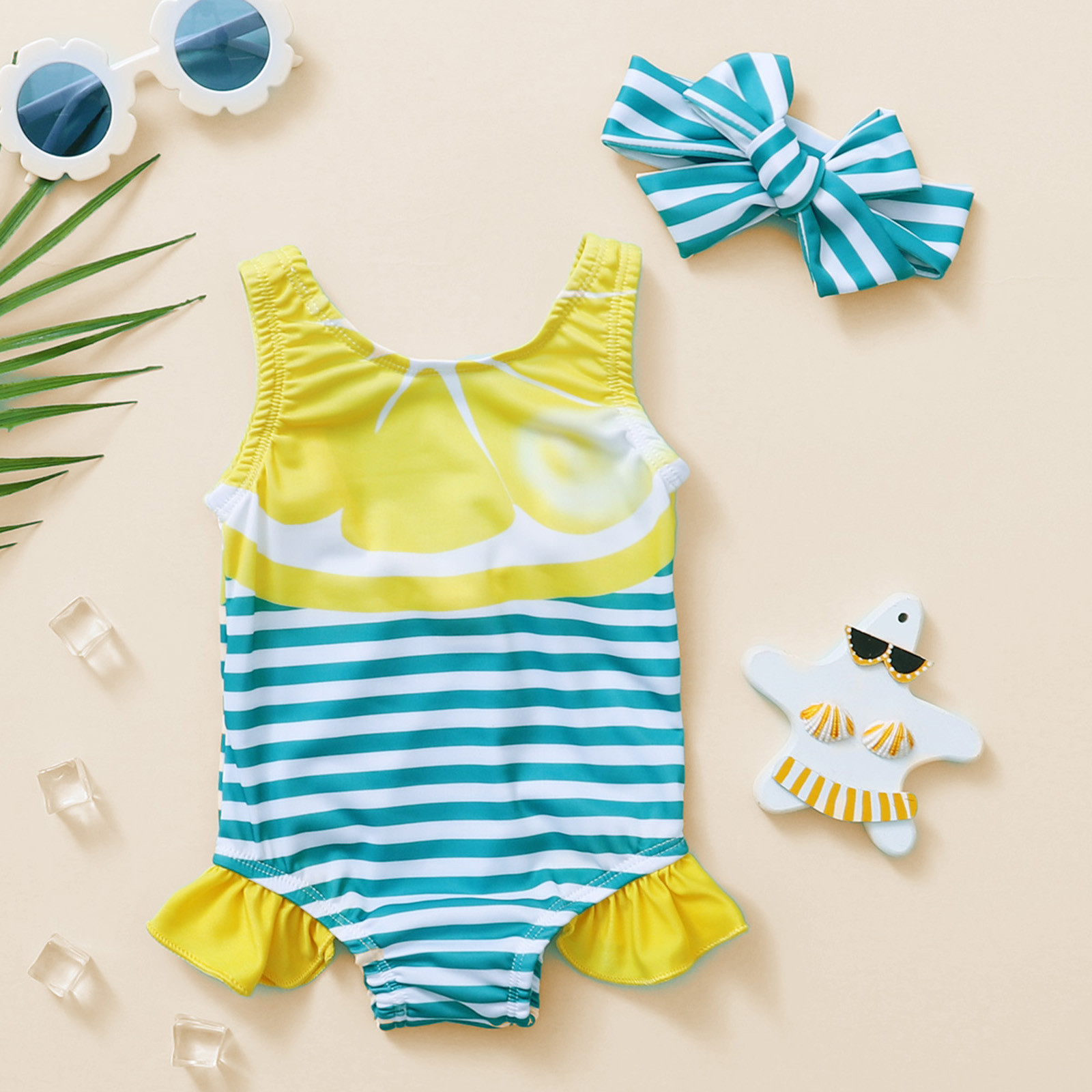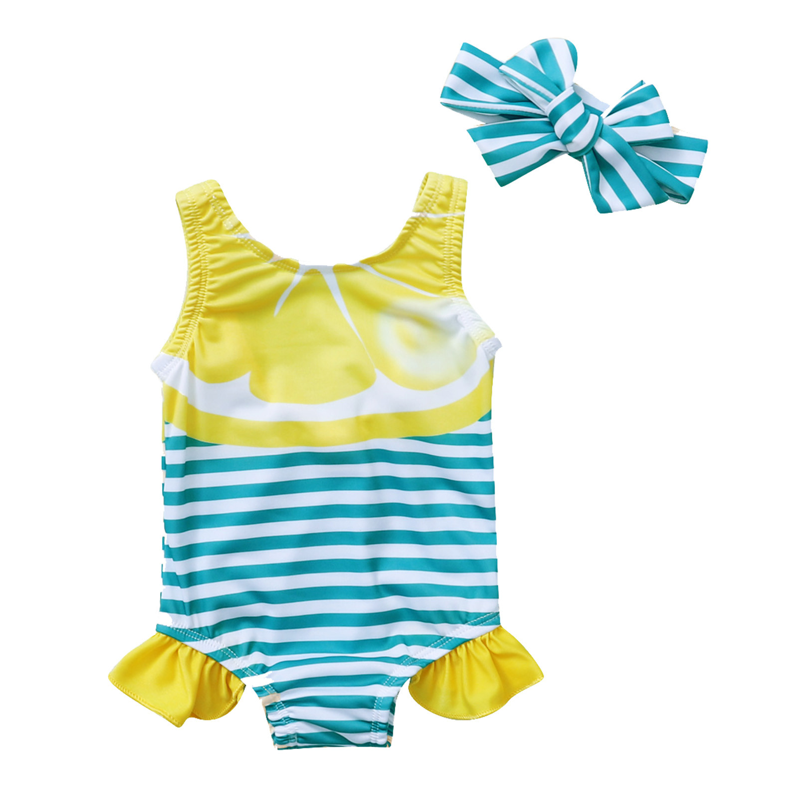Цельный купальник в полоску с принтом арбуза для маленьких девочек; Купальный костюм