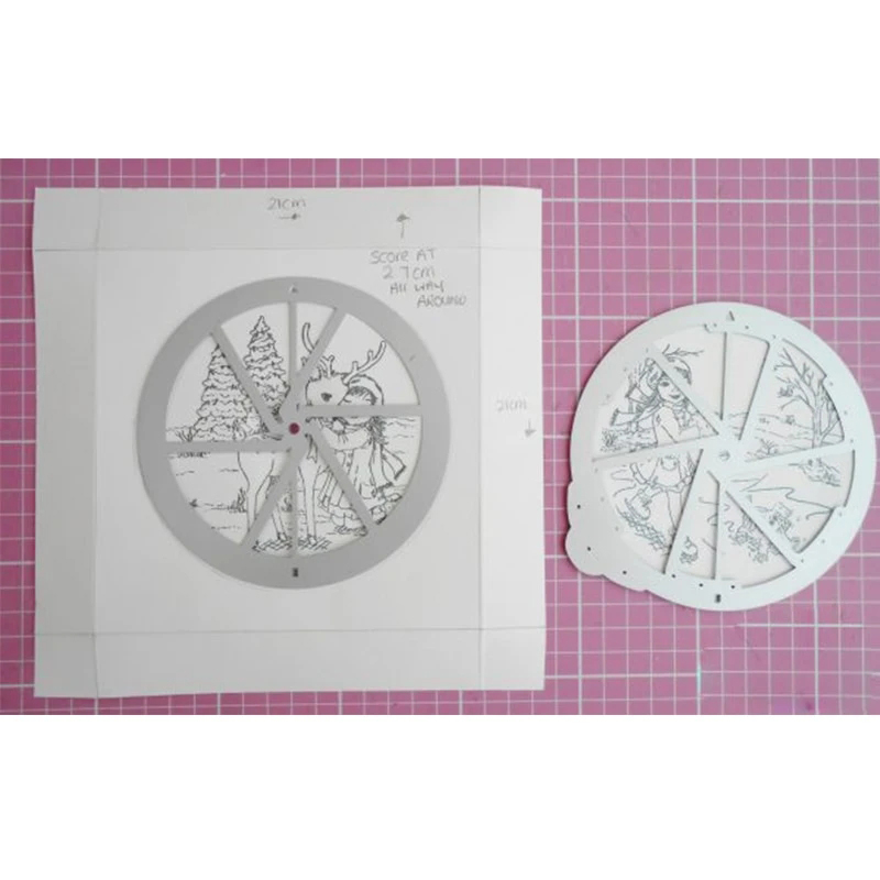 2. Простота в использовании. Выберите 2 изображения, которые вы хотите использовать. Затем поместите соответствующие штампы в верхней части изображений и запустите их под пресс-формой (слайдер с табулями должен использоваться на изображении внизу). После того, как изображения будут вырезаны, вы можете сложить их вместе и собрать их, чтобы создать катушку.