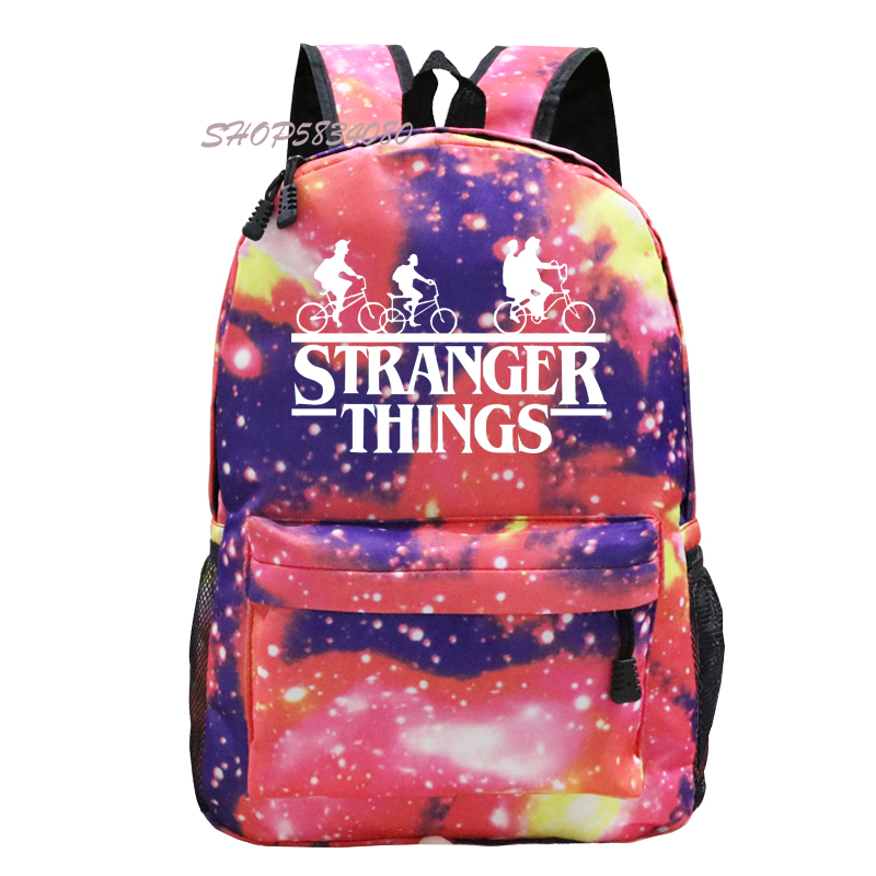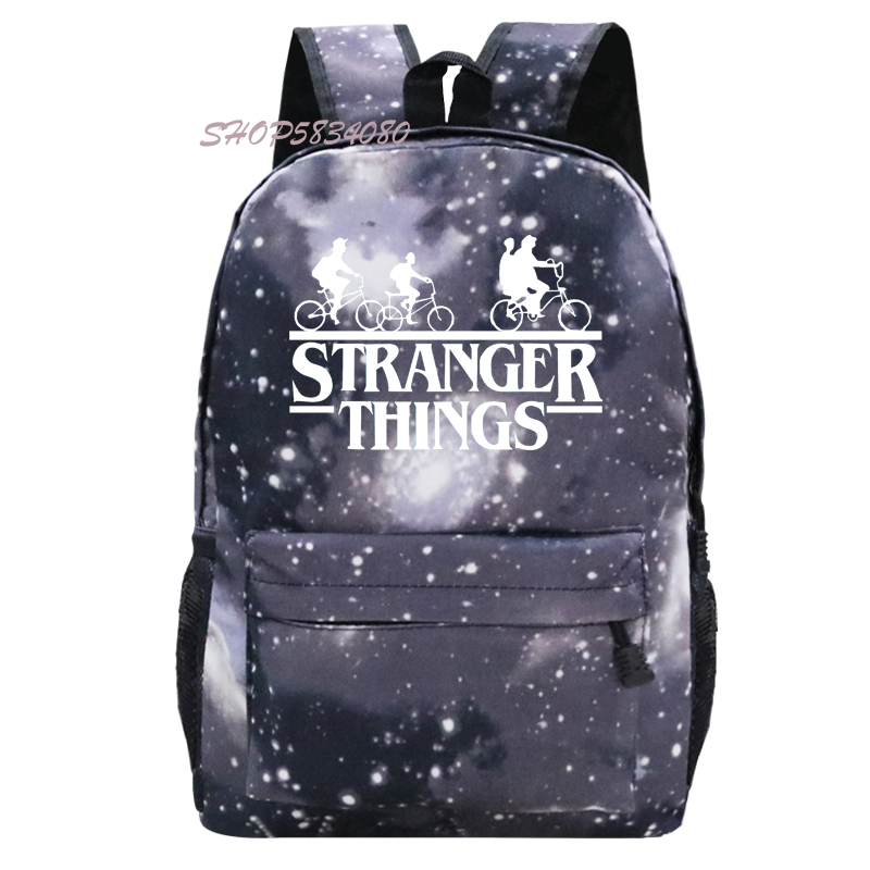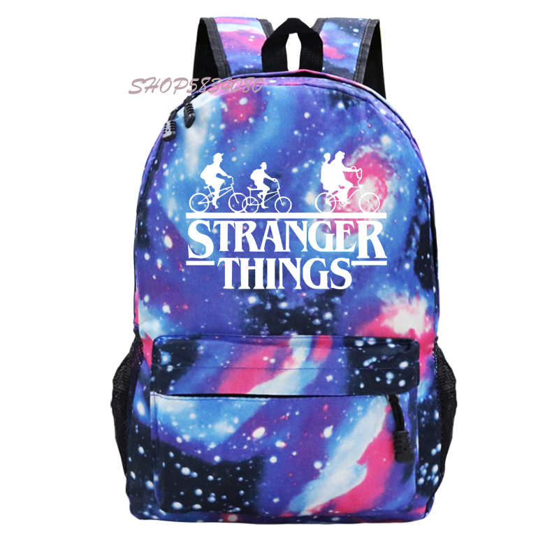 Gender:Unisex,Boys /Girls /Mens /Womens/Feminina /Hombre Printing pattern :Stranger Things [Can Customized]Color:Galaxy Black backpack/Galaxy Pink backpack/Galaxy Grey backpack/Galaxy Blue