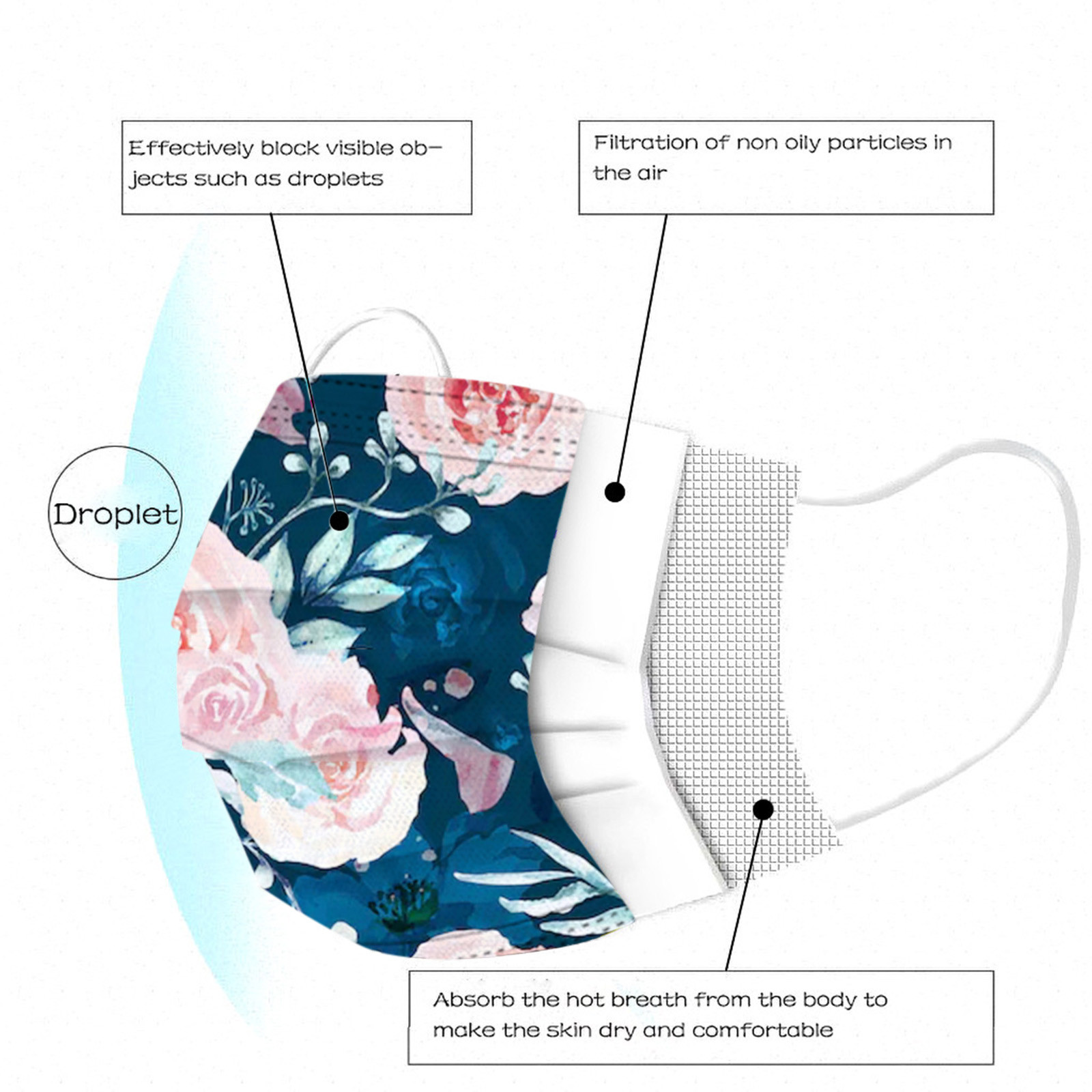 3 слоя Нетканая одноразовая маска изготовлена из 3 слоев нетканого материала, он безопасен для здоровья и безопасный для вас, чтобы использовать. Дышащий материал и милые узоры, что делает его полезным и модным. Специальный 3 слоя из нетканого материала, дизайн, обеспечивает некоторые меры защиты от пыли, автомобильный отходящий газ, пыльцу и т. Д. Эластичная петля уха позволяет легко снимать и надевать цепочку и не давит на уши. Маникюрный салон или любые другие области, где может потребоваться защита