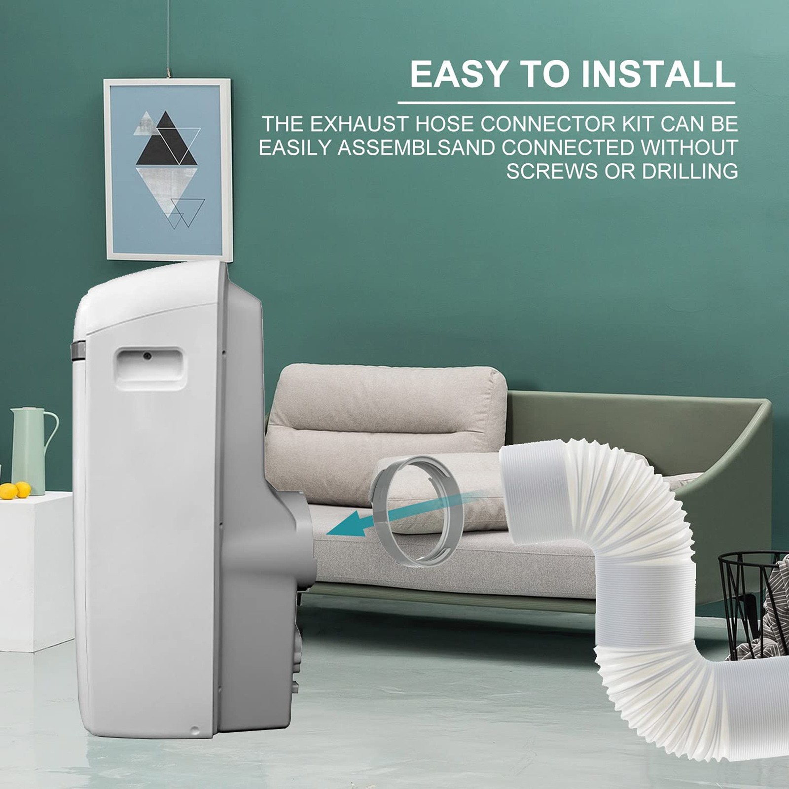 【Легко использовать 】: нет инструментов и не требуется бурение. Подключается к выхлопному шлангу и может быть легко установлен на задней части портативного кондиционера. Простой и удобный.