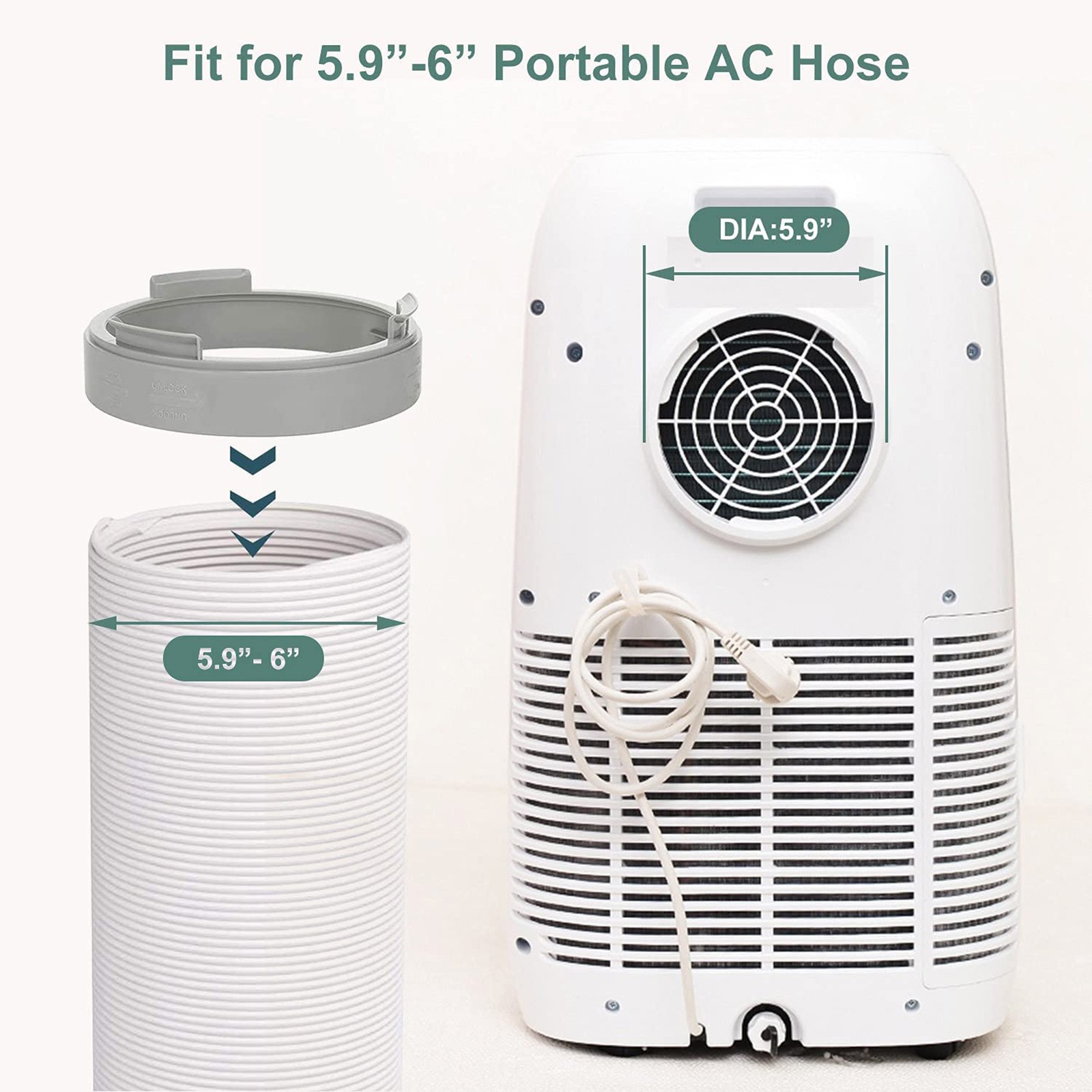【Подходит для всех 5,9 "-6" кондиционер HOSE】: разъемы выхлопного шланга могут быть установлены на задней части многих портативных кондиционеров. Выхлопной высокого давления как 5,9 "в диаметре может быть установлен (AC шланг 6 дюймов или 5,9 дюйма-это один и тот же товар), подходит для прямых рулей по часовой стрелке и против часовой стрелки высокого давления.