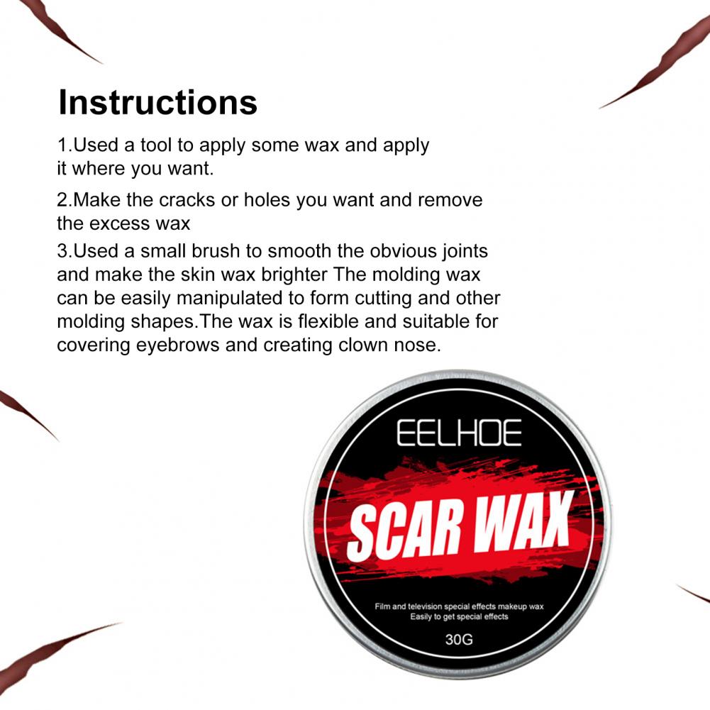Используйте его, чтобы соответствовать поддельному Гелю крови или красному маслу, вы можете сделать различные реалистичные эффекты РАН, такие как царапины и брызги. Формовочный Воск можно легко манипулировать для формирования резьбы и других форм формования. Воск является гибким и подходит для покрытия бровей и создания носа клоуна.