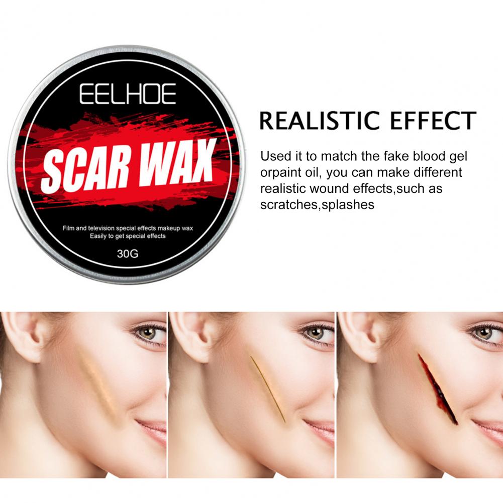 Реалистичный эффект можно показать с помощью этого воска для макияжа на Хэллоуин с хорошей пластичностью.