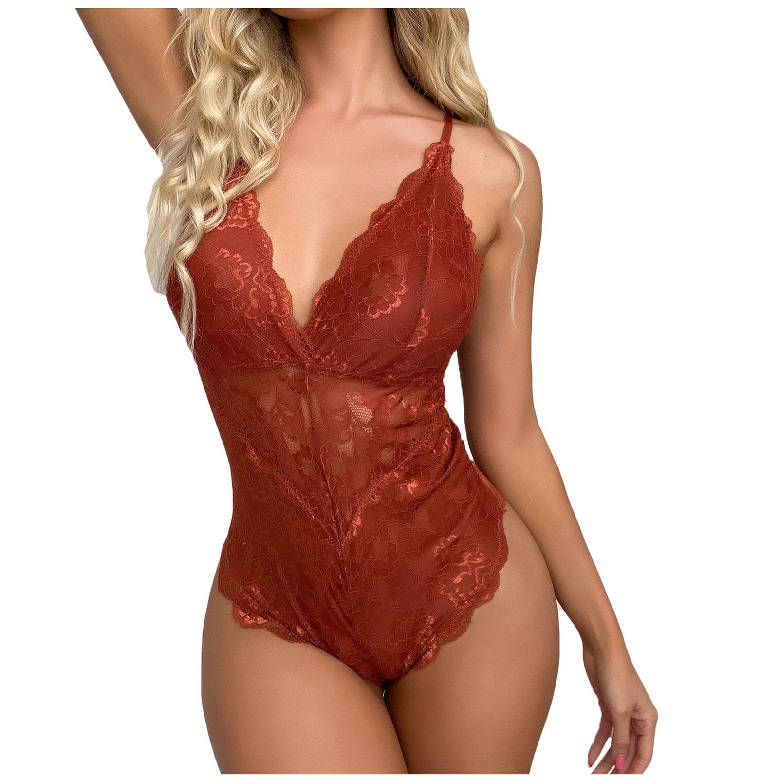 2.women deep V-neck lingerie see through bodysuit with stretch spaghetti strap and lace soft cups, makes you more elegant, charming, fash and chic