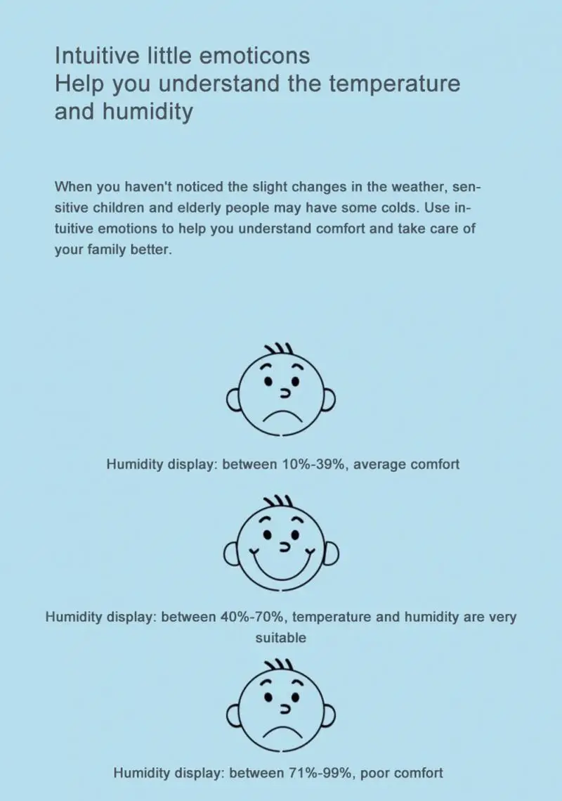 -Индикатор Air omfort: значки уровня указывают на комфорт воздуха, отлично подходит для мониторинга условий жизни и здоровья семьи.